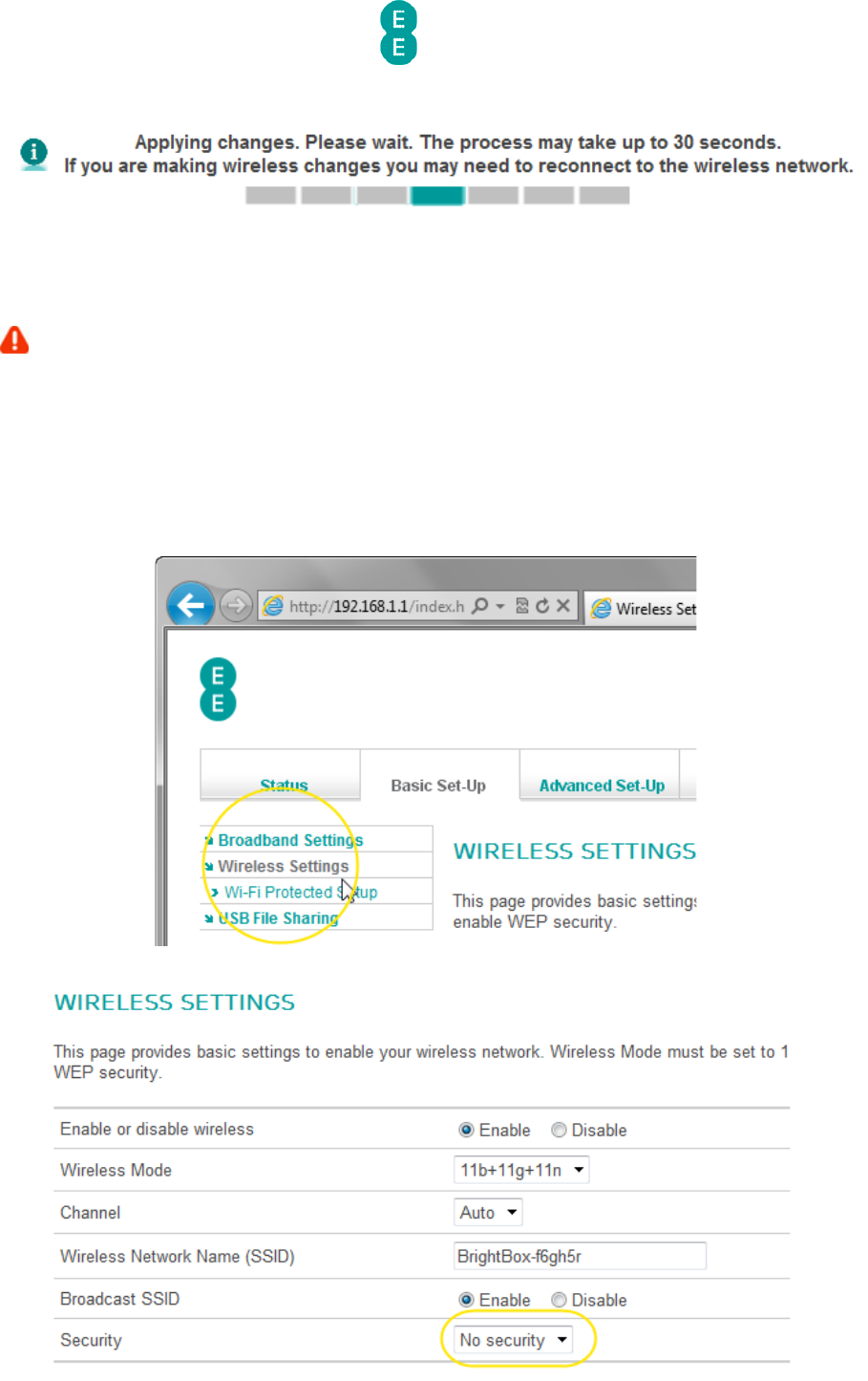 It is possible to disable the wireless security mode on the Bright Box router so that wireless